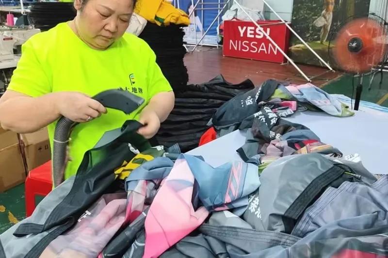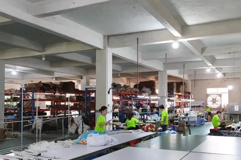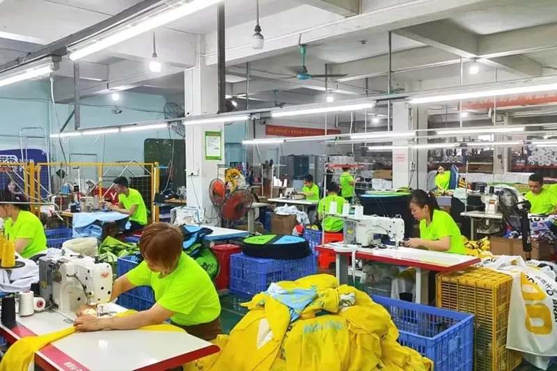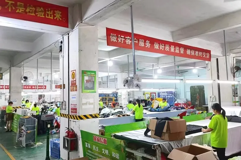 ワークショップ 10、800 平方メートル、スタッフ 130 人以上、デザイナー チーム 20 人以上、固定資産機械 5,000,000 ドル、金属加工機 50 セット以上、生地および印刷機 100 セット以上、年間輸出数量 1000,000 セット以上、顧客の重複注文 90%。