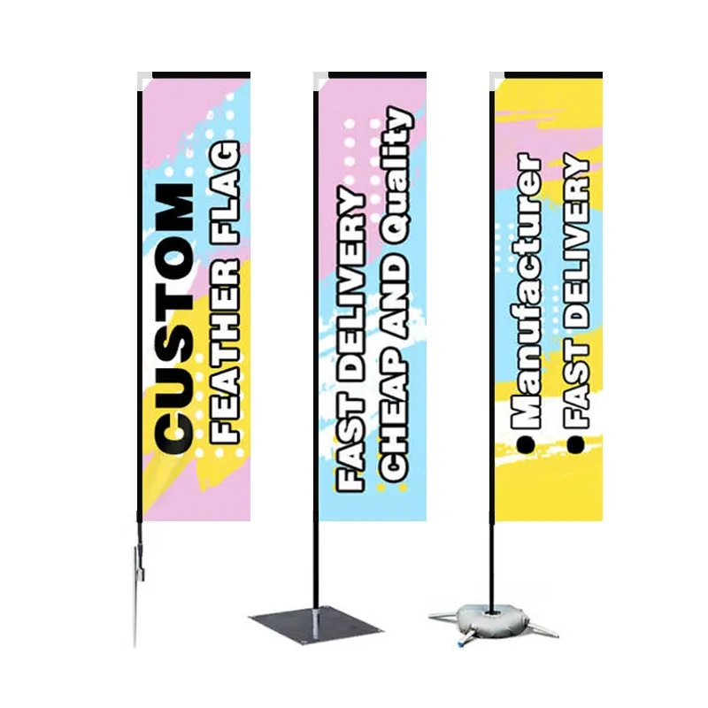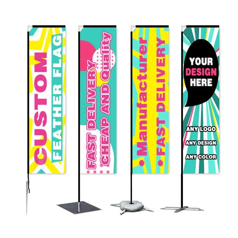 長方形のビーチ フラグ、フラット トップ フラグは、ブロック フラグ、エッジ フラグ、テレスコピック フラグとも呼ばれる長方形の形状で、いつでも美しく旗を表示できます。長方形のフラグは、ティアドロップ フラグやフェザー フラグよりも印刷可能な領域が大きく、インパクトのあるマーケティング メッセージやブランディングに適しています。